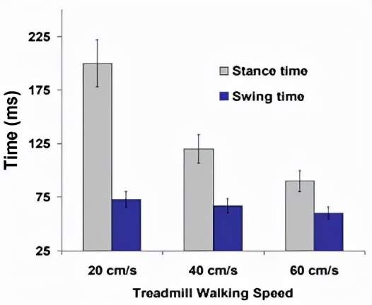 跑帶不同運行速度下,動物站立時間和擺動時間
