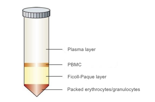 外周血單個(gè)核細(xì)胞(Peripheral Blood Mononuclear Cell,PBMC),是指外周血中具有單個(gè)核的細(xì)胞,包括淋巴細(xì)胞(Lymphocyte)、單核細(xì)胞(Monocyte)、樹(shù)突狀細(xì)胞(DC)和其他少量細(xì)胞。PBMC可通過(guò)健康人或動(dòng)物供體的外周血,通過(guò)Ficoll密度梯度離心法(IPHASE/匯智和源),磁珠分選等步驟獲得。