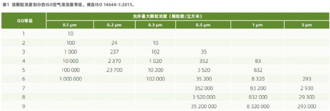 ISO 14644-1規(guī)定,空氣清潔度由每立方米允許的最大顆粒濃度進(jìn)行分類(lèi)。