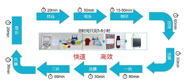 蛋白轉(zhuǎn)印使用天能VE-586轉(zhuǎn)移電泳槽主要優(yōu)勢在于:它可以在不埋冰的情況完成的蛋白電泳,如果配合快速轉(zhuǎn)膜液,整個電泳過程只需不到30分鐘,可同時轉(zhuǎn)印4塊膠,操作方法也比較簡便。在縮短轉(zhuǎn)印時間的同時,實現(xiàn)了蛋白樣品的高效轉(zhuǎn)印。