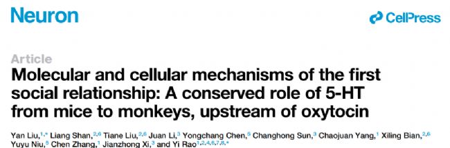 2023年3月3日首都醫(yī)科大學基礎醫(yī)學院劉琰/饒毅教授團隊在Neuron雜志上發(fā)表文章揭示5-HT在調(diào)控母親依戀行為中的關鍵作用。