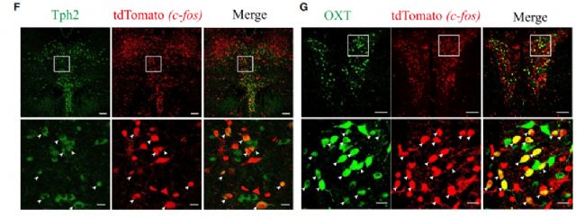 2、母親氣味激活5-HT能神經(jīng)元和催產(chǎn)素能神經(jīng)元