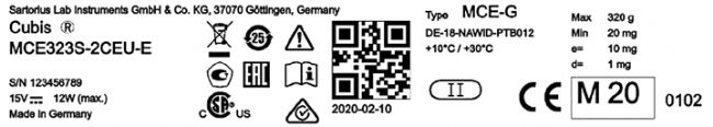 可以通過其標識牌(也稱為“銘牌”)上的標簽來識別已檢定的天平。在歐洲,除了指明儀器型號和序列號外,該標簽還包括型號、精度等級、以及CE標記旁邊的所謂補充計量標記(以M表示),其相鄰的最后兩位數(shù)字表示合格評定年份。