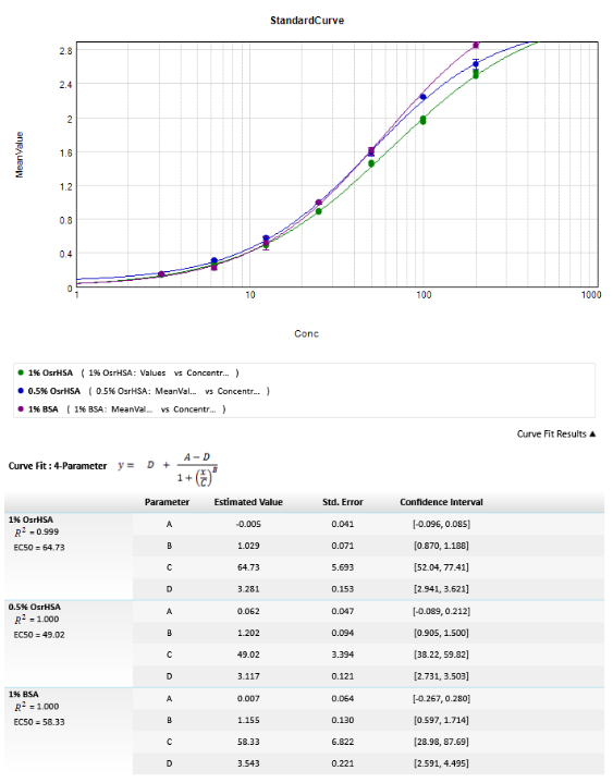 測試例1:OsrHSA與牛血清白蛋白對酶標抗體的保護對比
