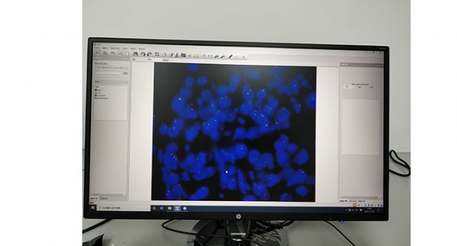 深圳禾正醫(yī)院的老師采用了明美的MFISH熒光原位雜交分析系統(tǒng),檢測中用her2/cep17的比值來測定是否有此原癌基因擴增,當HER2/CEP17比值≥2.0時,為HER2陽性;此外老師還定制了雙通道熒光模塊,可以同時在目鏡下觀察到紅綠兩種顏色的信號點,大大提高科室的工作效率。