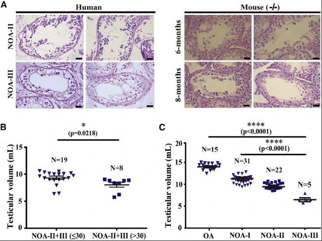 睪丸活檢標(biāo)本取自O(shè)A和NOA患者(排除既往有睪丸損傷的患者)