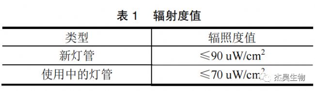 2)對于普通型或低臭氧型直管紫外線燈(30W),其測量位置同樣應(yīng)置于燈管下方1.5m。當(dāng)其輻照度值符合表6時應(yīng)對其進行更換。