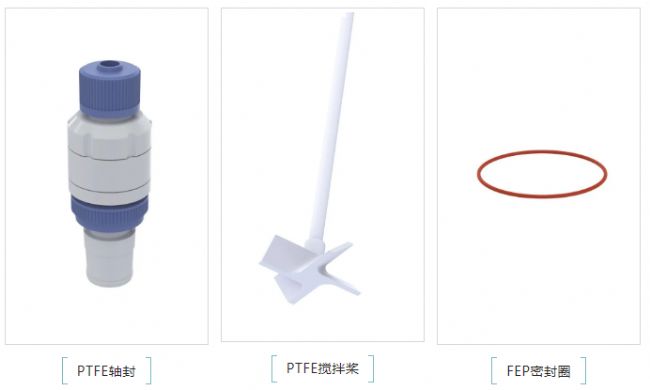 接觸HCL和樣品的組件有:高硼硅酸鹽玻璃釜體和釜蓋;PTFE軸封,攪拌槳,溫度傳感器和下料閥;FEP密封圈(改性PTFE,兼容PTFE的耐腐蝕性,又兼具柔韌性和更好的密封作用),均是超強耐化學(xué)腐蝕的。