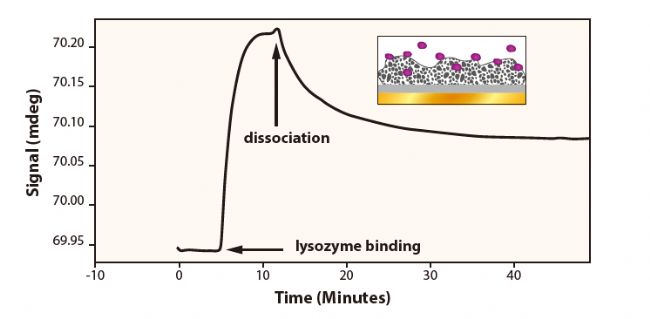 圖四:溶菌酶在羥基磷灰石涂層上的結(jié)合動力學(xué)