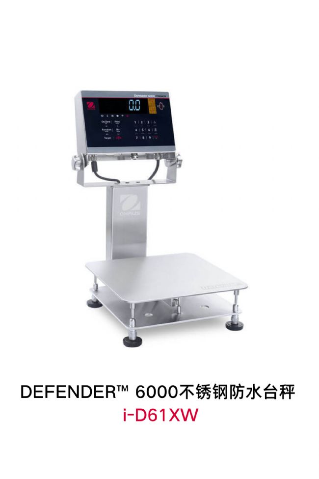 對(duì)于最高達(dá)到150kg的大容量食品稱重,奧豪斯提供 Defender™6000 系列臺(tái)秤。Defender 6000 專為食品加工而設(shè)計(jì),秤體平臺(tái)和框架采用耐用的 316 不銹鋼材質(zhì),顯示器也采用了316 不銹鋼和食品級(jí)聚碳酸酯,能夠應(yīng)用于潮濕、惡劣的環(huán)境下。它有各種秤臺(tái)尺寸、量程、可讀性和特殊功能可供選擇,以滿足您的需求。
