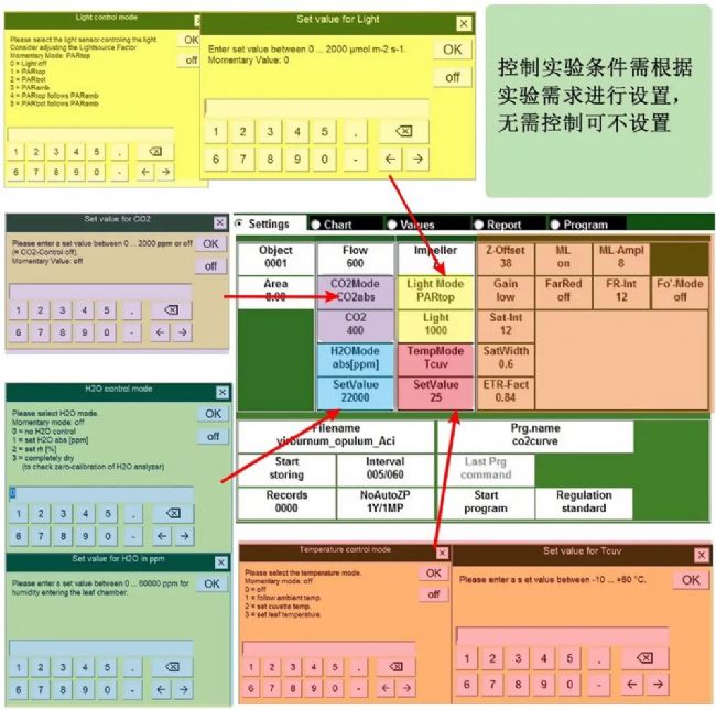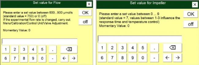 點(diǎn)擊軟件界面中的Impeller,可以設(shè)置葉室風(fēng)扇的速度,標(biāo)準(zhǔn)設(shè)置為7,該數(shù)值為風(fēng)扇轉(zhuǎn)速的檔位,風(fēng)扇的作用是混勻葉室內(nèi)局部小環(huán)境的氣體。對于光合作用過程中氣體交換微弱的植物,如林下的陰生植物,轉(zhuǎn)速可以設(shè)置為5,或者更小的數(shù)值。