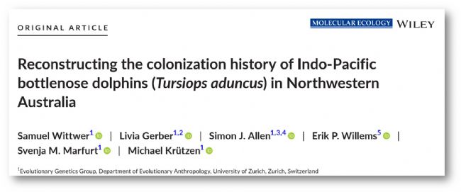 Wittwer, Samuel, et al. "Reconstructing the colonization history of Indo‐Pacific bottlenose dolphins (Tursiops aduncus) in Northwestern Australia." Molecular Ecology (2023).