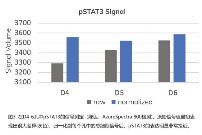 為解釋孔間的細(xì)胞數(shù)量及蛋白含量差異,將每孔的目的蛋白信號歸一化為該孔的全細(xì)胞染色信號值。找出稀釋系列中強(qiáng)度最高的全細(xì)胞信號值,將其他每孔的信號值除以該最大值,得出每孔的歸一化因子。再將每孔的目的蛋白信號除以相應(yīng)的歸一化因子,得到歸一化信號值。