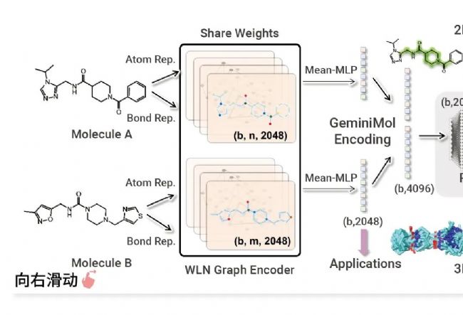 本次 AI 大賽獲得一等獎(jiǎng)的團(tuán)隊(duì)為上科大的 GeminiMol 團(tuán)隊(duì),構(gòu)象空間是他們的一大亮點(diǎn),該模型能夠識(shí)別 2D 結(jié)構(gòu)不相似,但 3D 構(gòu)象相似的潛在活性分子,有助于發(fā)現(xiàn)具有新穎結(jié)構(gòu)的先導(dǎo)化合物。該模型基于分子間構(gòu)象空間相似性對(duì)比學(xué)習(xí)來進(jìn)行訓(xùn)練,能夠表征藥物小分子的構(gòu)象空間特征,全面反映與分子結(jié)構(gòu)相關(guān)的分子屬性、潛在藥效性質(zhì)等,進(jìn)而在包括基于配體的虛擬篩選、靶標(biāo)鑒定、分子屬性預(yù)測(cè)等多種藥物發(fā)現(xiàn)任務(wù)上表現(xiàn)出均衡的優(yōu)良性能。