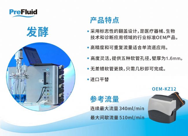 蠕動(dòng)泵在發(fā)酵過程中起著一個(gè)重要作用——調(diào)節(jié)反應(yīng)器中的許多重要成分。包括測(cè)量和控制Ph值,添加營養(yǎng)物,測(cè)量壓力,以及防止泡沫形成。其優(yōu)勢(shì)有: