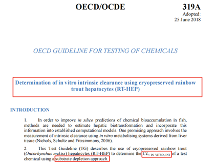 [1] OECD Test No.319A: Determination of in vitro intrinsic clearance using cryopreserved rainbow trout hepatocytes(RT-HEP).