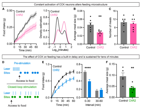 圖1、DRN腦區(qū)CCK陽(yáng)性神經(jīng)元通過bite-to-bite模式抑制攝食行為