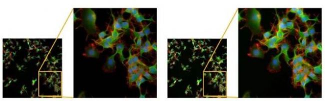 比較熒光觀察中的物鏡亮度和畫面邊緣清晰度
