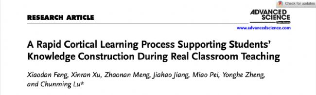 2025年2月7日,Advanced Science雜志在線發(fā)表了北京師范大學認知神經(jīng)科學與學習國家重點實驗室盧春明課題組的研究 “A Rapid Cortical Learning Process Supporting Students’ Knowledge Construction during Real Classroom Teaching”。該研究融合可穿戴腦功能近紅外光譜成像和機器學習等技術(shù),突破以往課堂教學認知神經(jīng)機理研究的局限,率先揭示了真實課堂情境下有效教學促進學生知識建構(gòu)的內(nèi)隱認知機制及其神經(jīng)基礎,為教育神經(jīng)科學基礎理論提供了實證依據(jù),為一線教育教學實踐提供了理論支撐,具有重要的科學價值和實踐意義。