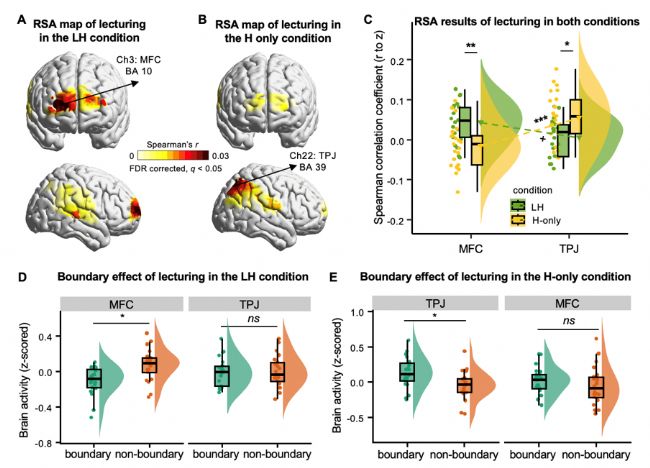 在本研究中,課題組充分發(fā)揮該平臺和方法的優(yōu)勢,以真實的大學課堂為場景,解析并比較了自學+講授的混合 (LH) 和傳統(tǒng)的講授 (H-only) 兩種教學模式。在混合教學模式中,學生先通過回憶(recalling) 進行自學,然后聆聽教師講授(lecturing);在傳統(tǒng)講授模式中,只包含教師的講授。