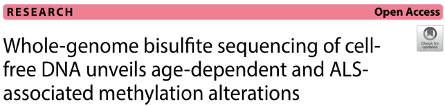 近日,埃默里大學醫(yī)學院人類遺傳學系Peng Jin團隊在《Cell & Bioscience》雜志發(fā)表題為《Whole-genome bisulfite sequencing of cell-free DNA unveils age-dependent and ALS-associated methylation alterations》的研究論文,研究通過全基因組亞硫酸鹽測序(WGBS),分析了血漿中的cfDNA甲基化模式,揭示了與年齡相關(guān)以及ALS相關(guān)的甲基化變化。并分析了cfDNA甲基化與ALS患者中樞神經(jīng)系統(tǒng)基因表達之間的相關(guān)性。最后評估了cfDNA甲基化作為ALS生物標志物的潛力。