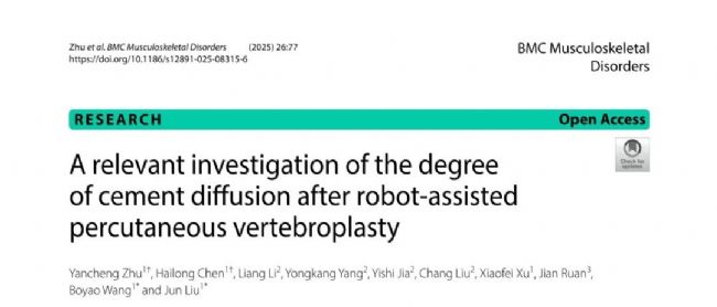 A relevant investigation of the degree of cement diffusion after robot-assisted percutaneous vertebroplasty 作者:朱彥丞,陳海龍,李亮,楊永康,賈以時(shí),劉暢,許小飛,阮健 通訊作者:王伯堯,劉軍 發(fā)刊平臺(tái):BMC Musculoskeletal Disorders