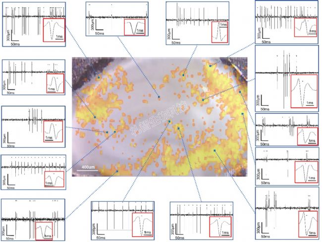 圖3. HD-MEA 記錄的小鼠海馬區(qū)神經(jīng)元電生理活動圖。