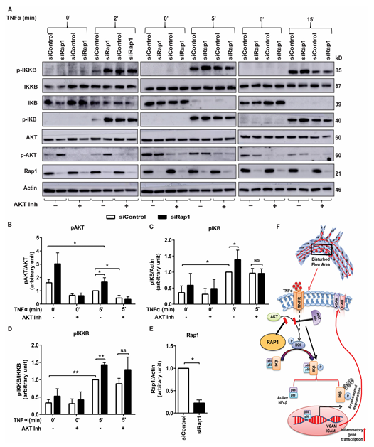 圖4 在缺乏層流的情況下,Rap1 通過抑制 Akt 來限制向 NF-κB 的炎癥信號(hào)傳導(dǎo)。