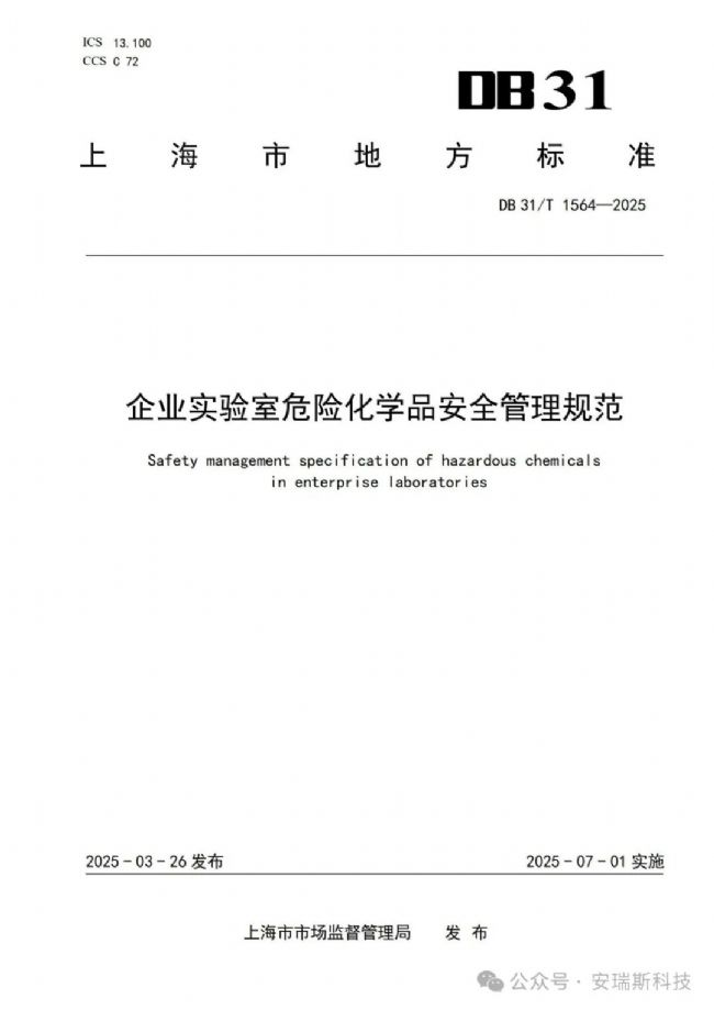 《DB31/T 1564-2025企業(yè)實(shí)驗(yàn)室危險(xiǎn)化學(xué)品安全管理規(guī)范 》