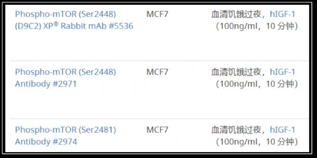 圖5 CST官網(wǎng)上mTOR的刺激方式