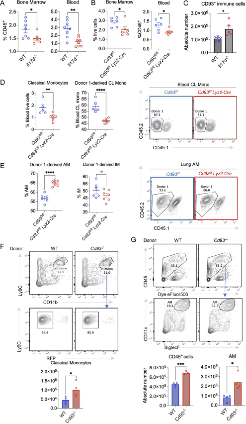 混合骨髓移植實驗:研究IL-17D/CD93軸對單核細(xì)胞遷移的影響,驗證CD93的細(xì)胞自主性作用。