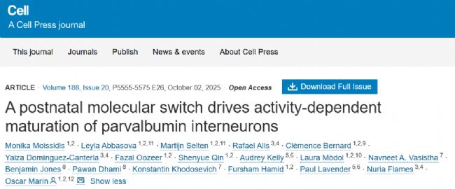 2025年7月15日,英國、丹麥以及西班牙的學者聯(lián)合在Cell期刊上發(fā)表了題名為“A postnatal molecular switch drives activity-dependent maturation of parvalbumin interneurons”的研究論文,本研究揭示了神經(jīng)元活動通過PGC-1α分子開關調(diào)控小清蛋白陽性(PV+)中間神經(jīng)元發(fā)育成熟的分子機制。