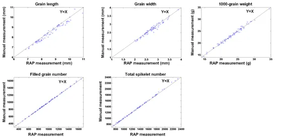 粒長、粒寬、千粒重、實粒數(shù)、總粒數(shù),系統(tǒng)測量值和人工測量值比較,平均相對誤差小于5%,R²大于0.9。