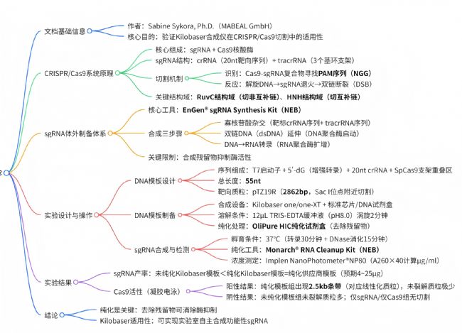 - 核心問題:Kilobaser 合成儀制備 DNA 模板時,會產(chǎn)生抑制轉(zhuǎn)錄酶、DNase 的殘留物(鹽、保護基團等),影響 sgRNA 合成與功能。