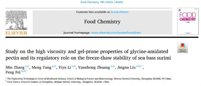 閩南師范大學(xué)費(fèi)鵬老師課題組在《Food Chemistry》期刊(IF=9.8)上發(fā)表題為“Study on the high viscosity and gel-prone properties of glycine-amidated pectin and its regulatory role on the freeze-thaw stability of sea bass surimi”文章,主要探討了通過(guò)超低溫酶法(-5°C)制備的甘氨酸;z(Gly-Pe)的理化特性及其在海鱸魚(yú)糜凍融穩(wěn)定性中的保護(hù)機(jī)制。研究以酶促;男詾榍腥朦c(diǎn),系統(tǒng)表征了Gly-Pe的結(jié)構(gòu)變化(如分子鏈柔性增強(qiáng)、結(jié)晶結(jié)構(gòu)破壞),并評(píng)估其在酸性、低剪切條件下粘度可達(dá)原果膠(Na-Pe)1000倍的優(yōu)異性能,以及在凍融循環(huán)中對(duì)魚(yú)糜質(zhì)構(gòu)的調(diào)控作用。核心創(chuàng)新在于Gly-Pe通過(guò)犧牲部分動(dòng)態(tài)剛性增強(qiáng)靜態(tài)承載能力,實(shí)現(xiàn)選擇性結(jié)構(gòu)重組,為開(kāi)發(fā)新型天然冷凍保護(hù)劑提供了理論基礎(chǔ)。