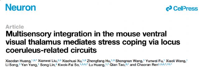 2025年11月5日暨南大學(xué)任超然團(tuán)隊(duì)在Neuron雜志發(fā)表文章“Multisensory integration in the mouse ventral visual thalamus mediates stress coping via locus coeruleus-related circuits”揭示調(diào)節(jié)壓力適應(yīng)行為的神經(jīng)環(huán)路:LC→vLGN/IGL。