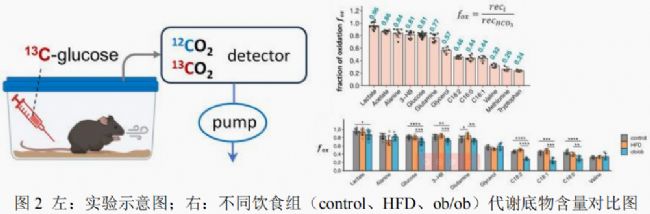 哈佛大學(xué)團(tuán)隊(duì)通過(guò)構(gòu)建“小鼠全機(jī)體能量通量模型”,量化10種主要循環(huán)營(yíng)養(yǎng)素的氧化、儲(chǔ)存、再循環(huán)與互變速率,比較了lean(正常飲食組)、HFD(高脂飲食組)及l(fā)eptin缺陷ob/ob小鼠(一種先天性缺乏瘦素、極度肥胖且患有嚴(yán)重高血糖的模型)的代謝經(jīng)濟(jì)差異。