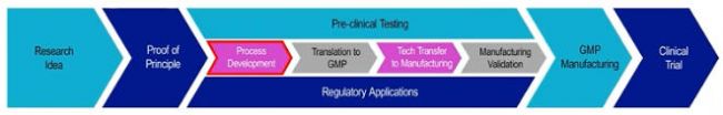 其中,Pre-clinical Testing 與 Regulation Applications 是同時(shí)進(jìn)行的,工藝開(kāi)發(fā)是基礎(chǔ),決定了是否成功。首先對(duì)產(chǎn)品/工藝相關(guān)風(fēng)險(xiǎn)進(jìn)行關(guān)鍵評(píng)估,涉及產(chǎn)品產(chǎn)量、產(chǎn)品活率、試劑及耗材、監(jiān)管要求、如何評(píng)價(jià)結(jié)果以及實(shí)際可行性(成本、規(guī)模以及時(shí)間)。