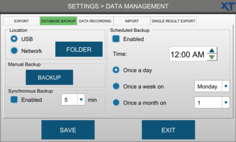OsmoTECH 系列滲透壓儀具備多種數(shù)據(jù)備份方式,滿足不同組織的需求,比如手動備份和通過設(shè)定自動定期備份至網(wǎng)絡(luò)文件夾,以及同步備份到網(wǎng)絡(luò)文件夾,最大限度的避免數(shù)據(jù)丟失。當(dāng)發(fā)生災(zāi)難后,備份數(shù)據(jù)可通過 USB 或者網(wǎng)絡(luò)文件夾實現(xiàn)完整恢復(fù)。