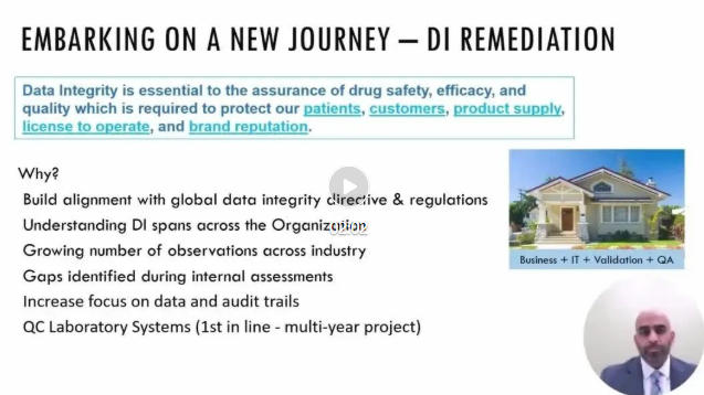首先他分享了關(guān)于數(shù)據(jù)完整性的過去、現(xiàn)在和未來。過去的數(shù)據(jù)完整性主要包含了三個部分:質(zhì)量控制、分析設(shè)備的驗證和信息技術(shù) (IT) ,且各自有獨立的管理系統(tǒng)。但隨著巡視員(Inspector)的提問的變化和對數(shù)據(jù)的重視,不論是實驗人員還是設(shè)備驗證團(tuán)隊,亦或是 IT 人員均需要完整的培訓(xùn),共同應(yīng)對巡視員的提問。在此次研討會中,Sachin 對 483 中常見的數(shù)據(jù)完整性問題進(jìn)行了總結(jié),比如未授權(quán)的設(shè)備登錄、篡改數(shù)據(jù)的潛在風(fēng)險、中斷審計追蹤等。為了保證藥品質(zhì)量和安全,需要建立完善的數(shù)據(jù)完整性體系,并將質(zhì)量控制、IT、驗證和 QA 規(guī)整至一個質(zhì)量管理系統(tǒng)。