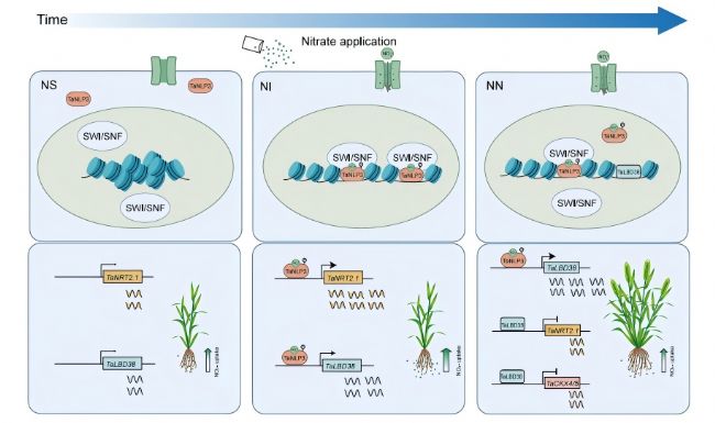 該研究闡明了TaNLP3作為核心調(diào)控因子,通過與SWI/SNF復(fù)合體協(xié)作重塑染色質(zhì)可及性,借助不一致性前饋環(huán)實(shí)現(xiàn)硝酸鹽吸收與分蘗形成的時(shí)空協(xié)同。不僅深化了對(duì)作物氮信號(hào)網(wǎng)絡(luò)的理解,也為通過分子設(shè)計(jì)培育“高產(chǎn)高效”小麥品種提供了新靶點(diǎn)與遺傳資源。