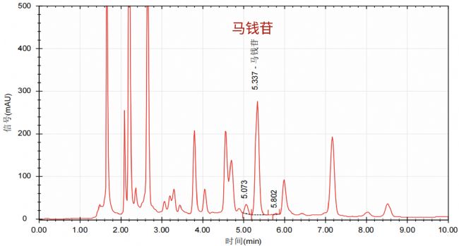 小結(jié):采用Gold Phenyl-Hexyl色譜柱對(duì)忍冬藤中的馬錢苷進(jìn)行含量測(cè)定,馬錢苷峰的理論塔板數(shù)在20000左右,滿足藥典規(guī)定馬錢苷理論塔板數(shù)不低于3000的要求。