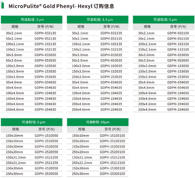 色譜柱:MicroPulite® Gold Phenyl-Hexyl 4.6*150mm 3μm(貨號(hào):GDPH-154630)