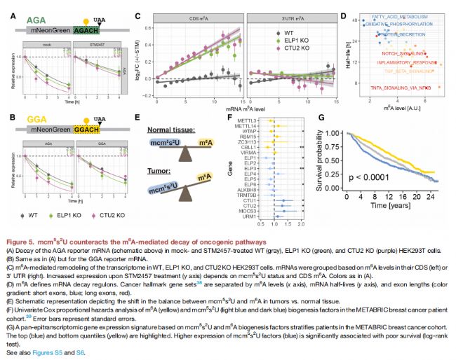 • 敲除 mcm⁵s²U 生物合成關(guān)鍵因子(ELP1、CTU2)后,m⁶A 修飾 mRNA 的降解速率顯著加快,且核糖體碰撞現(xiàn)象加;