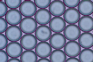 尺寸在 50µm 范圍內(nèi)的高度單分散的藻酸鹽微球。——點(diǎn)成Elveflow 團(tuán)隊(duì)的實(shí)驗(yàn)結(jié)果。