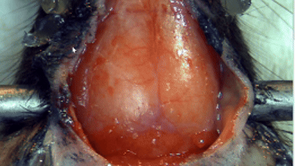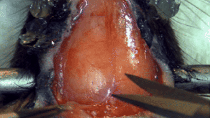 - 使用彈簧剪剪去小鼠頭皮,充分暴露顱骨區(qū)域。