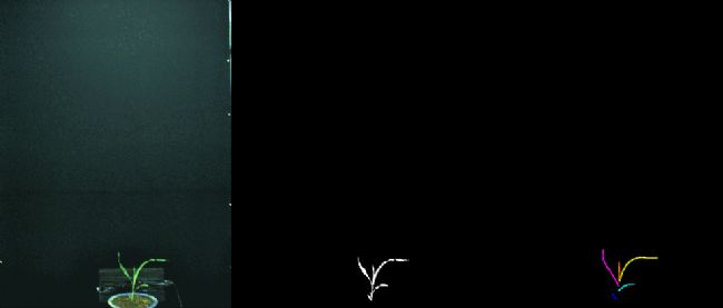 本系統(tǒng)依托三臺RGB相機與電動旋轉(zhuǎn)臺協(xié)同工作,采集盆栽植株多視角圖像序列,結(jié)合運動恢復結(jié)構(gòu)與多視圖立體視覺算法構(gòu)建高精度三維點云模型。二維層面可從正交投影圖像提取株高、冠幅、投影葉面積、顏色分布及形態(tài)輪廓等參數(shù);三維層面通過點云處理量化冠層體積、空間分布指數(shù)、三維分枝角度及表面積等結(jié)構(gòu)參數(shù)的量化分析,覆蓋從二維形態(tài)到三維架構(gòu)的多尺度表型解析,為盆栽植物表型研究提供全面數(shù)據(jù)支撐。