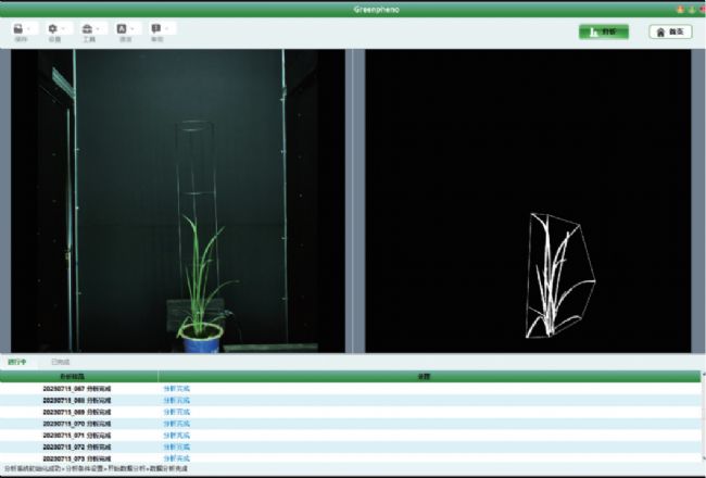 該軟件支持作物數(shù)據(jù)的在線實時采集與分析,通過圖像采集卡獲取成像箱中的作物圖像,并采用自適應閾值分割、深度學習圖像分割(如U-Net++)及邊緣檢測等算法,自動提取生物量、株型、緊湊度、卷葉指數(shù)、綠葉比和生長速率等數(shù)字化表型參數(shù)。