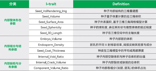 主要提取性狀參數(shù)I-trait(以種子為例)