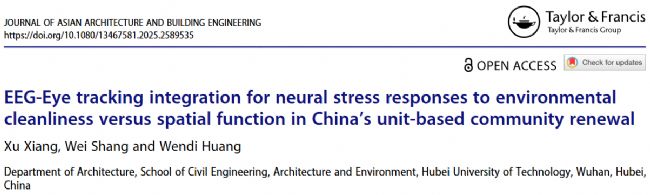 本篇論文發(fā)表于《Journal of Asian Architecture and Building Engineering》(2025年11月16日在線發(fā)布),標(biāo)題為“EEG-Eye tracking integration for neural stress responses to environmental cleanliness versus spatial function in China's unit-based community renewal”。作者來自湖北工業(yè)大學(xué)建筑系。
